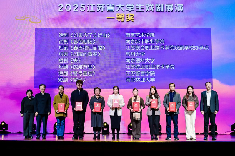 12/3112月30日,由江苏省委宣传部、省教育厅、共青团江苏省委联合主办的2025江苏省大学生戏剧展演活动颁奖仪式在江苏大剧院举行。...