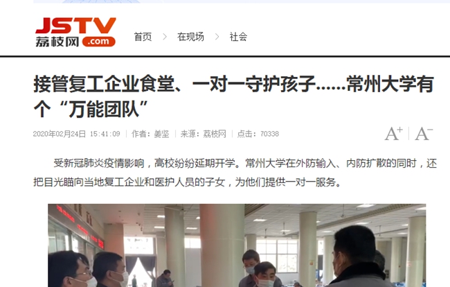 受新冠肺炎疫情影响,高校纷纷延期开学。常州大学在外防输入、内防扩散的同时,还把目光瞄向当地复工企业和医护人员的子女,为他们提供一对一服务。