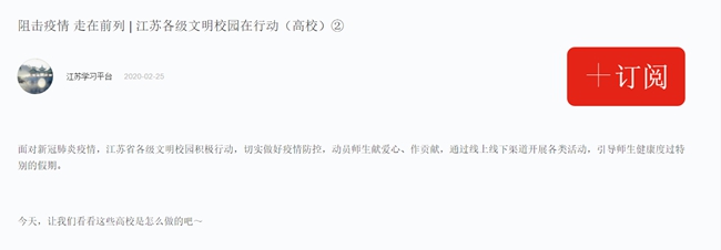 疫情发生以来,常大师生积极投身抗击疫情志愿服务中。每个学院均有青年学生积极投身到当地卡口值班、信息登记等常规志愿服务中。同时,常大师生集思广益,积极发挥专业特长参与疫情防控。制药学院师生录制《齐心战“疫” 贡献青春力量——七步洗手法》《齐心战“疫” 贡献青春力量——正确戴口罩和打喷嚏的方法》公益短视频,引导大家养成良好的卫生习惯,做好自我防护。体育学院推出了“二十四式简化太极拳全套动作示范”视频,让大家“宅”在家也能强身健体。艺术学院的同学们以“同舟共济渡难关,与你‘艺’起战疫情”为主题,创作海报作品127幅,向奋战在一线的医护人员致敬,传递着青春正能量。阿里云大数据学院师生与常州市农业农村局合作,在省内率先开发建设了农产品合格证信息管理平台,开具食用农产品电子合格证,用大数据护航市民的菜篮子。做好“守护最美逆行者子女”志愿服务工作,马克思主义学院的老师还为常州市赴湖北医务人员及在常抗疫一线医务人员子女提供包括心理疏导、学业解惑、生活帮助等多项“一对一”帮扶服务。