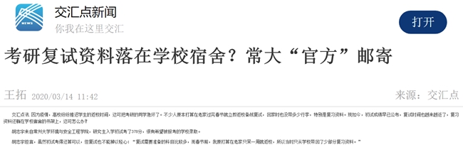 交汇点讯 因为疫情,高校纷纷推迟学生的返校时间,这可把考研的同学急坏了。不少人原本打算在老家过完春节就立即返校备战复试,回家时也没带多少行李,特别是复习资料。现如今,初试成绩早已公布,复试时间也越来越近了,复习资料还躺在学校宿舍的书架上,这可怎么办?