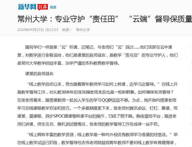 跟同学们一样居家“云”听课、记笔记、与老师们“云”探讨……他们活跃在云中课堂,对教学进行全程监控,他们是课堂的良师益友,是教学“责任田”的专业守护人,他们是常州大学教学经验丰富、治学严谨的本科教育教学督导。