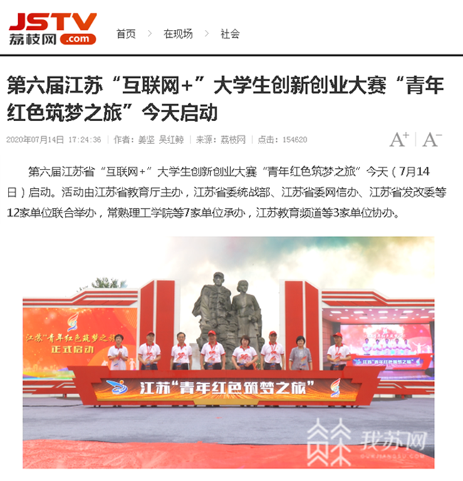 第六届江苏省“互联网+”大学生创新创业大赛“青年红色筑梦之旅”今天(7月14日)启动。活动由江苏省教育厅主办,江苏省委统战部、江苏省委网信办、江苏省发改委等12家单位联合举办,常熟理工学院等7家单位承办,江苏教育频道等3家单位协办。