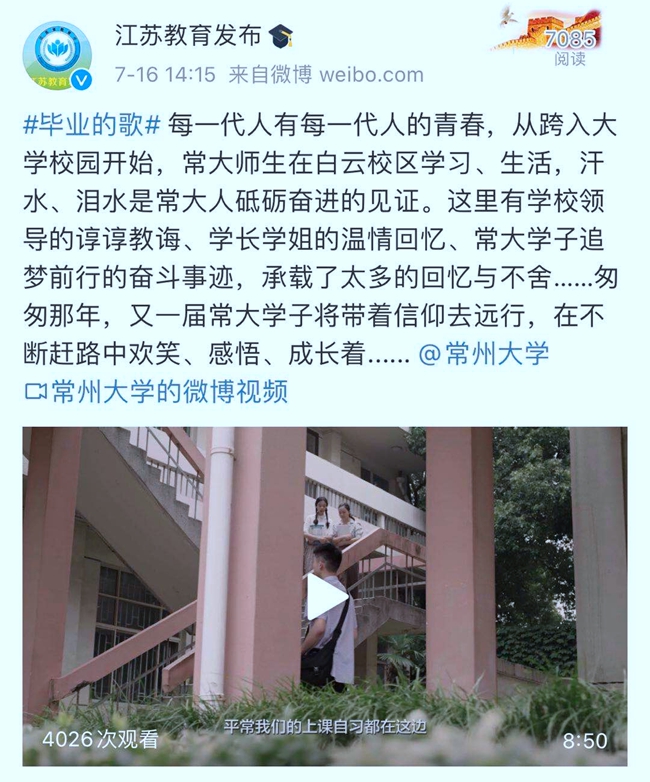 江苏教育发布(微博) 2020.7.16 发布时间:2020/07/18 浏览次数:204次