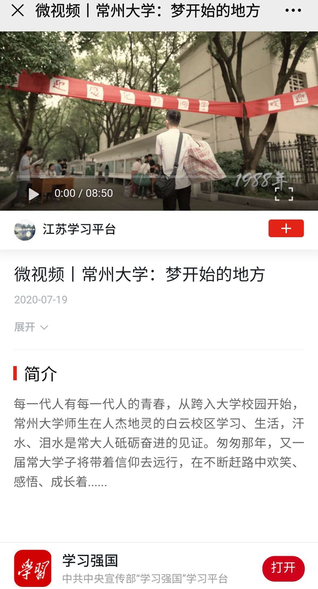 学习强国:微视频丨常州大学:梦开始的地方
