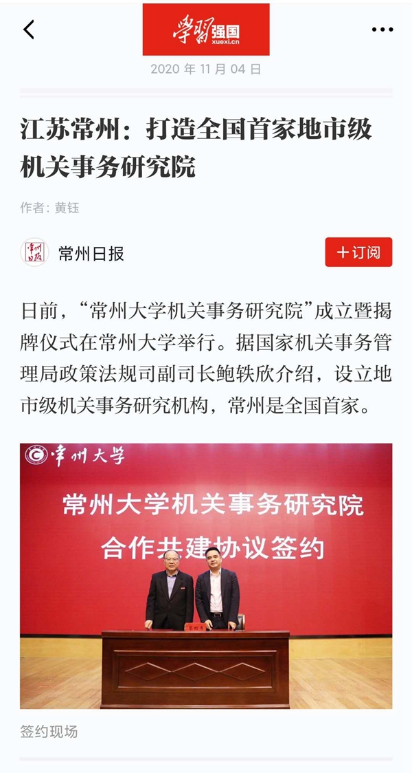 据了解,常州大学机关事务研究院由常州市机关事务管理局和常州大学瞿秋白政府管理学院联合主办。