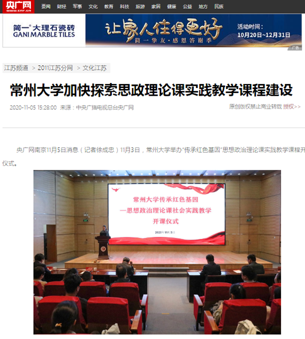 央广网南京11月5日消息(记者徐成忠)11月3日,常州大学举办“传承红色基因”思想政治理论课实践教学课程开课仪式。