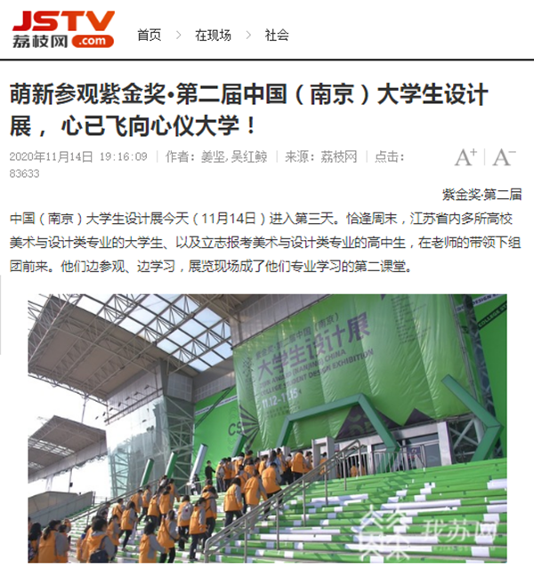 中国(南京)大学生设计展今天(11月14日)进入第三天。恰逢周末,江苏省内多所高校美术与设计类专业的大学生、以及立志报考美术与设计类专业的高中生,在老师的带领下组团前来。他们边参观、边学习,展览现场成了他们专业学习的第二课堂。