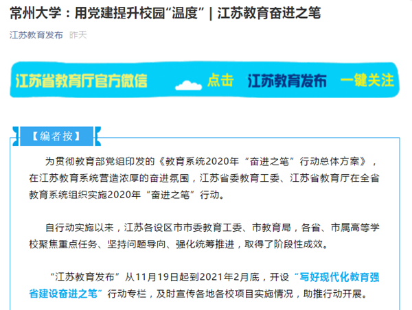 一直以来,基层党建工作与业务工作脱节是横亘在高校党委心头的“顽疾”。为此,常州大学积极探索,走出一条常大特色的党建发展之路。