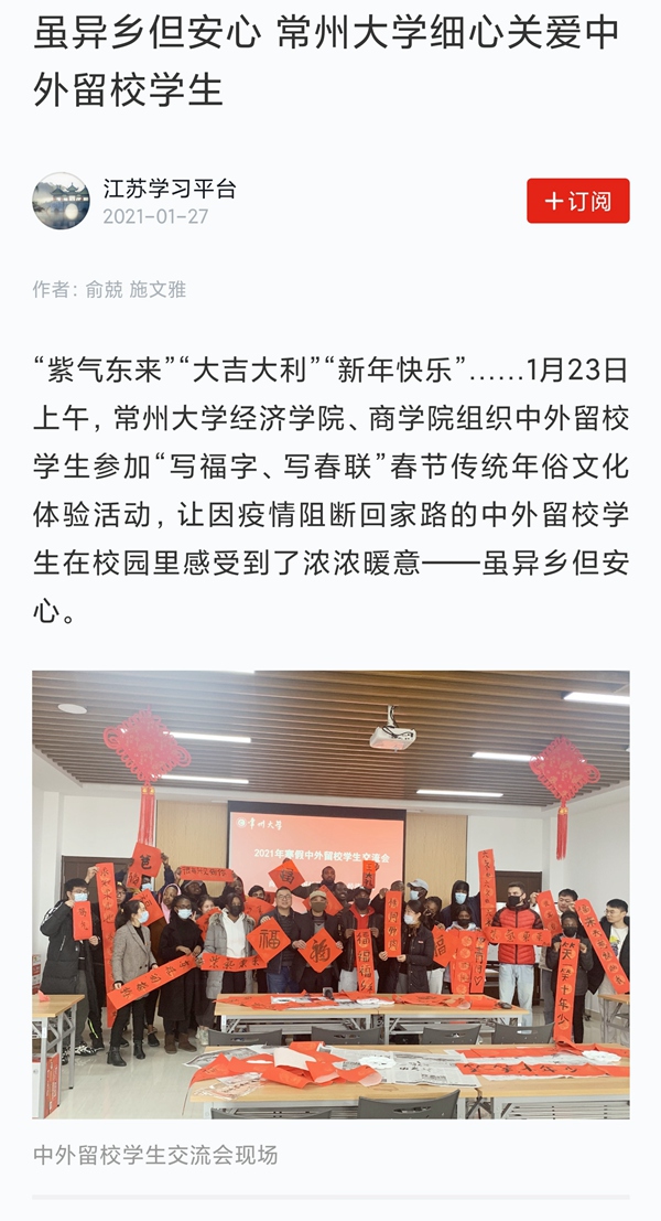 学习强国:虽异乡但安心 常州大学细心关爱中外留校学生 (编辑:刘博)