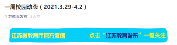 江苏教育发布(微信) 2021.4.3 发布时间:2021/04/06 浏览次数:465次