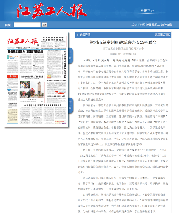 吴文龙 包海霞 许娟 江苏工人报 2021.4.6 发布时间:2021/04/07 浏览次数:509次