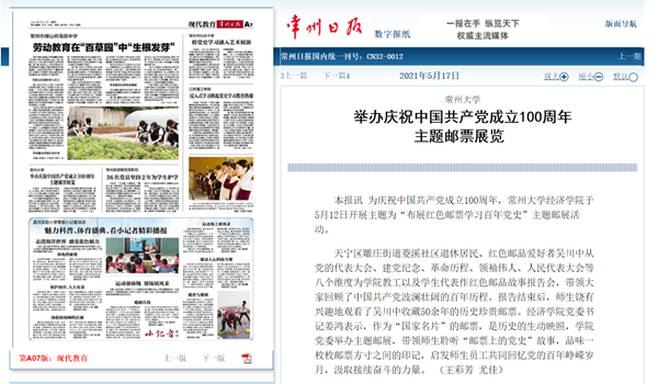 为庆祝中国共产党成立100周年,常州大学经济学院于5月12日开展主题为“布展红色邮票学习百年党史”主题邮展活动。