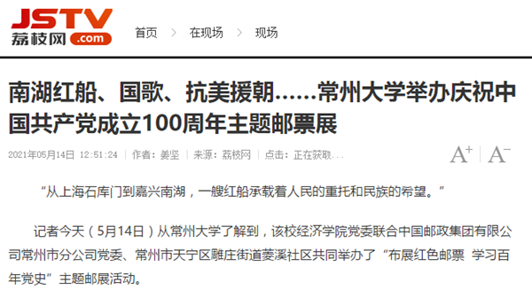 5月14日,从常州大学了解到,该校经济学院党委联合中国邮政集团有限公司常州市分公司党委、常州市天宁区雕庄街道菱溪社区共同举办了“布展红色邮票 学习百年党史”主题邮展活动。