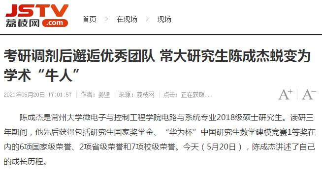 2018年,陈成杰考研初试成绩300分,勉强过线,被调剂至常州大学。当时,他的愿望也仅仅是获得硕士文凭,找一份工作。