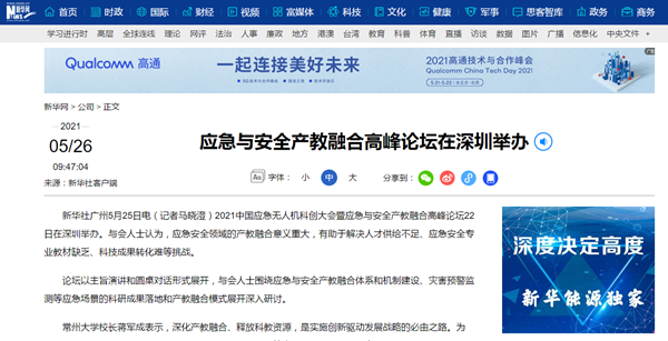 2021中国应急无人机科创大会暨应急与安全产教融合高峰论坛22日在深圳举办。与会人士认为,应急安全领域的产教融合意义重大,有助于解决人才供给不足、应急安全专业教材缺乏、科技成果转化难等挑战。