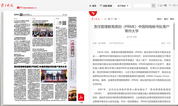 5月28-30日,首届责任管理教育原则(PRME)倡议组织中国学术委员会会议——暨PRME中国网络成立大会在常州大学召开,全球300多名长期致力于责任管理教育和可持续发展问题研究的学者通过“线上+线下”形式参加大会。在联合国全球契约倡议成立的国际责任管理教育原则(PRME)组织的大力支持下,通过负责人梅特·摩尔辛博士授权PRME全球委员黄海峰教授,在常州大学陆华良教授、西交利物浦大学曹瑄玮博士、北京工商大学郭毅教授的共同组织下,联合社会各界率先在常州大学设立了责任管理教育原则中国网络(PRME Chapter China)秘书处。据悉,这是责任管理教育原则(PRME)倡议组织首次在中国高校成立的分支机构。
