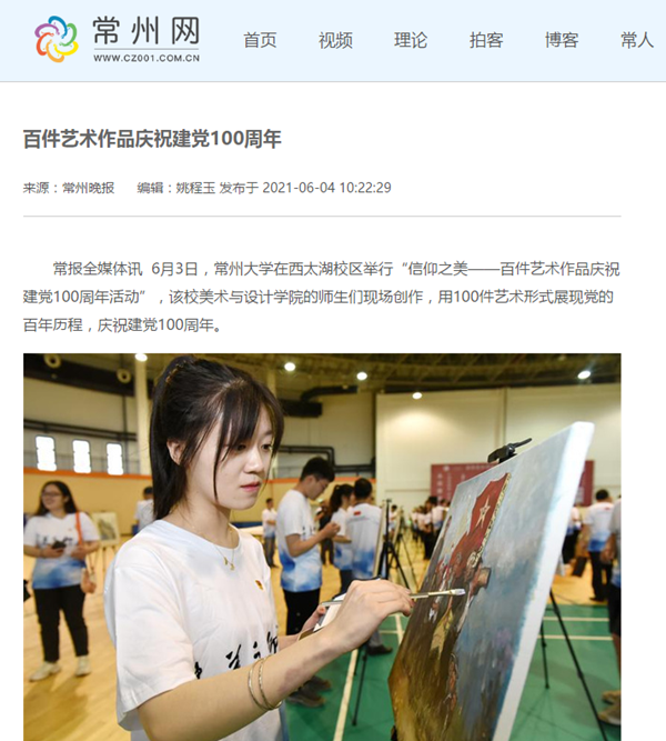 6月3日,常州大学在西太湖校区举行“信仰之美——百件艺术作品庆祝建党100周年活动”,该校美术与设计学院的师生们现场创作,用100件艺术形式展现党的百年历程,庆祝建党100周年。