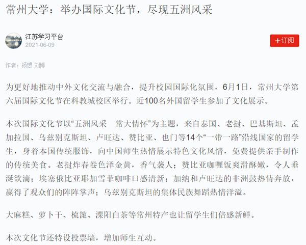 学习强国:常州大学举办国际文化节,尽现五洲风采