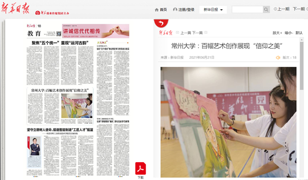 “选取中国共产党百年光辉历程中的经典瞬间,广大师生创作了100件艺术作品,记录历史变迁,讲述人文故事。”6月3日,常州大学美术与设计学院举办“信仰之美”百件艺术作品现场创作活动,学院党委书记安宁表示,这是一次党史学习教育与校园美育相结合的主题党日活动,更是一次生动的艺术创作实践。