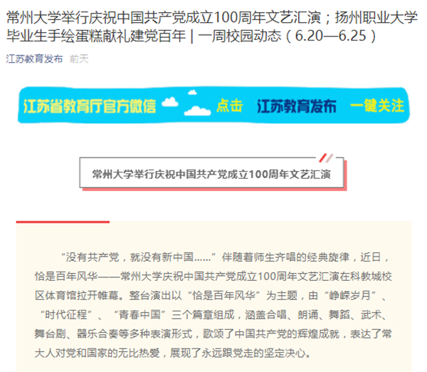 常州大学举行庆祝中国共产党成立100周年文艺汇演