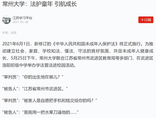 学习强国:常州大学——法护童年 引航成长