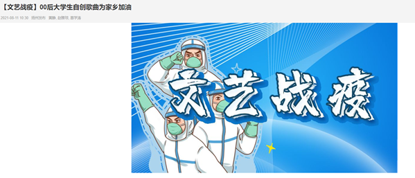 00后季泽龙是扬州人,目前就读于常州大学,疫情发生后,创作了战疫歌曲《扬州莱斯》《嗨,扬州》,并联系了几个有着共同音乐爱好的扬州学生一起录制,用歌声传递青春力量,为扬州加油。