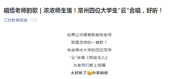 江苏教育频道(微信):https://mp.weixin.qq.com/s/m0BBBApcDJPgQjJ8NbtWrg