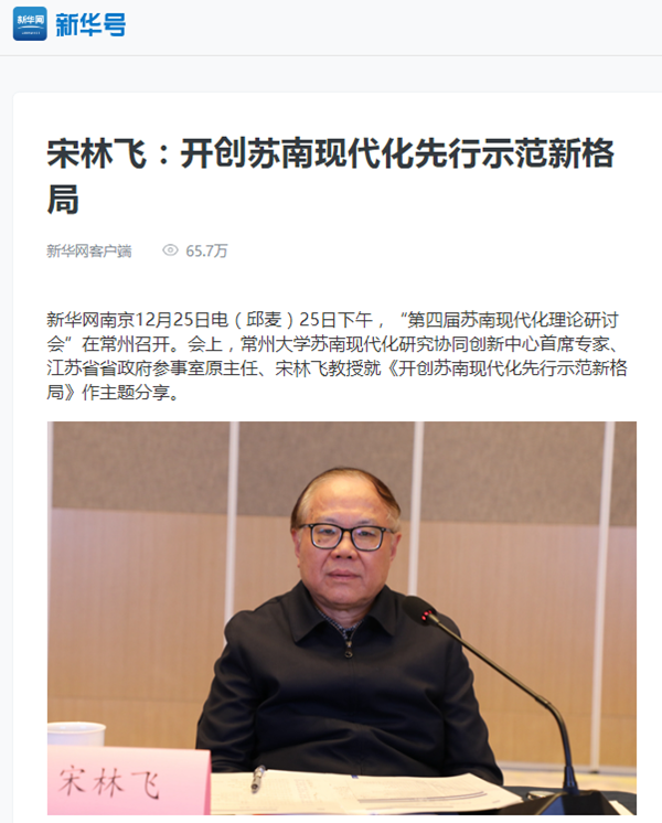 新华网客户端:宋林飞——开创苏南现代化先行示范新格局