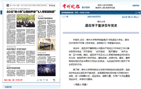 据了解,常州大学商学院充分发挥本院特色和优势资源,选拔8名学生成立退伍学子宣讲团,全面展现党的百年奋斗历程和伟大成就,进一步鼓舞斗志、坚定信念、凝聚力量,引导广大师生重温党史岁月、传承时代精神。