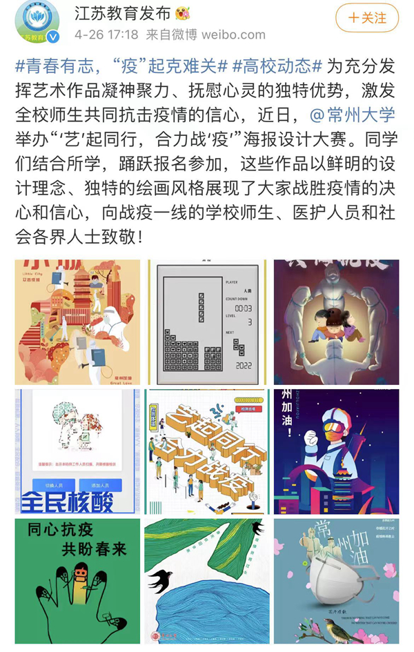 江苏教育发布(微博):青春有志,“疫”起克难关