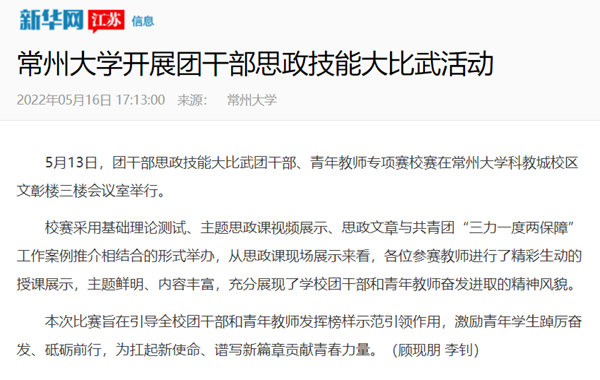 5月13日,团干部思政技能大比武团干部、青年教师专项赛校赛在常州大学科教城校区文彰楼三楼会议室举行。