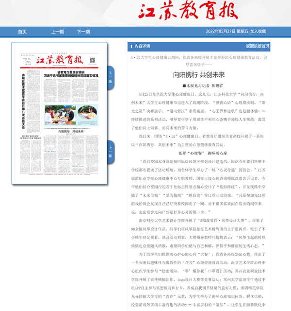 陈思洋 江苏教育报01版 2022.5.27 发布时间:2022/05/27 浏览次数:667次