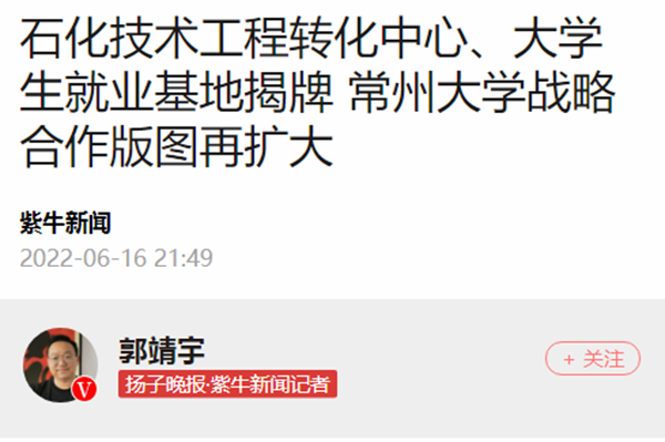6月15日,中石化南京工程有限公司与常州大学战略合作协议签订仪式暨石化技术工程转化中心、大学生就业基地揭牌仪式在中石化南京工程有限公司(以下简称“南京工程公司”)举行。