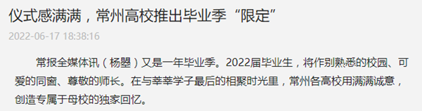 又是一年毕业季。2022届毕业生,将作别熟悉的校园、可爱的同窗、尊敬的师长。在与莘莘学子最后的相聚时光里,常州各高校用满满诚意,创造专属于母校的独家回忆。