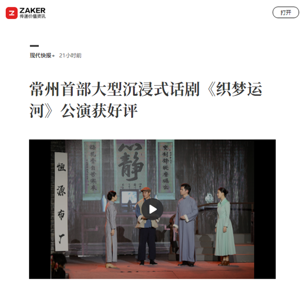日前,由常州大学音乐与影视学院学生参与主演的常州市首部大型沉浸式话剧《织梦运河》在工业遗存运河五号小剧场上演。