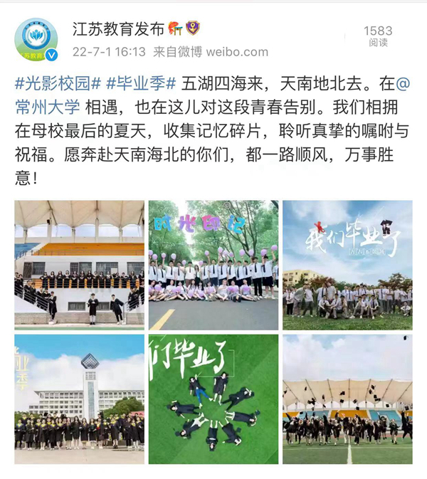 江苏教育发布(微博):#光影校园# #毕业季# 五湖四海来,天南地北去