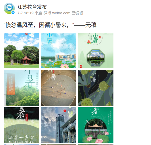 江苏教育发布(微博):倏忽温风至,因循小暑来