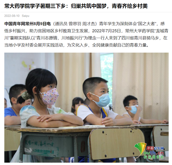 中国青年网:常大药学院学子暑期三下乡——归巢共筑中国梦,青春齐绘乡村美