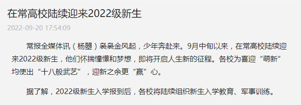 据了解,2022级新生入学报到后,各校将陆续组织新生入学教育、军事训练。