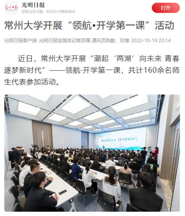 近日,常州大学开展“潮起‘两湖’向未来 青春逐梦新时代”——领航·开学第一课,共计160余名师生代表参加活动。
