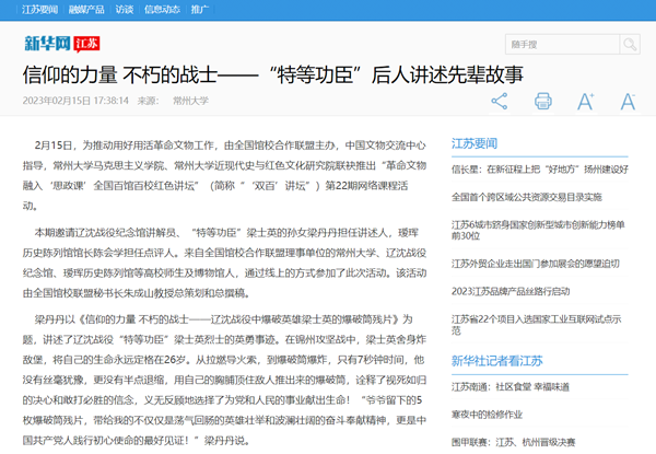 本期邀请辽沈战役纪念馆讲解员、“特等功臣”梁士英的孙女梁丹丹担任讲述人,瑷珲历史陈列馆馆长陈会学担任点评人。来自全国馆校合作联盟理事单位的常州大学、辽沈战役纪念馆、瑷珲历史陈列馆等高校师生及博物馆人,通过线上的方式参加了此次活动。该活动由全国馆校联盟秘书长朱成山教授总策划和总撰稿。