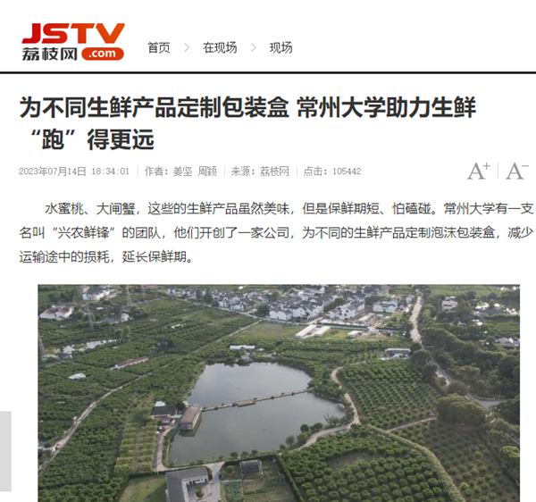 水蜜桃、大闸蟹,这些的生鲜产品虽然美味,但是保鲜期短、怕磕碰。常州大学有一支名叫“兴农鲜锋”的团队,他们开创了一家公司,为不同的生鲜产品定制泡沫包装盒,减少运输途中的损耗,延长保鲜期。