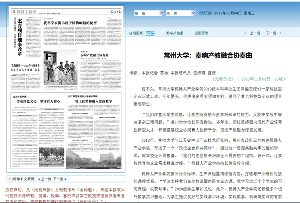 2018年,常州大学与江苏省中以产业技术研究院、常州市政府三方共建机器人产业学院,形成了一个“政校企合作共同体”,通过这一资源共融共享的组织形式,筑牢校企合作根基。“我们的定位就是培养企业需要的工程师、设计师,让学校教育和企业需求精准对接。”机器人产业学院院长徐淑玲介绍。