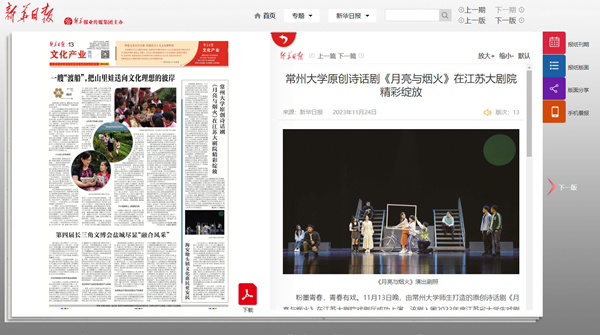 原创诗话剧《月亮与烟火》的创作和演出中凝聚了常州大学音乐、表演、舞蹈等多个专业师生的智慧和汗水,此次成功演出不仅展现了学院师生的才华和实力,也彰显出常州大学在艺术教育和创作方面的优秀成果。学校将继续深入贯彻党的二十大精神和习近平文化思想,践行“以美育人,以文化人”使命,创新美育课堂,提升校园文化,培养学生的艺术实践和舞台表现能力,为弘扬和传播社会主义优秀文化而不断奋进。