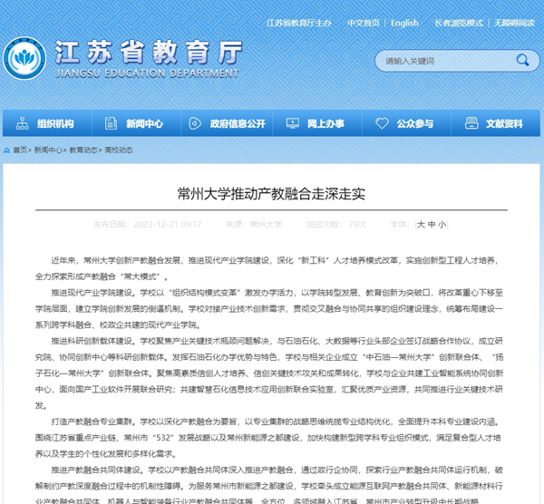 近年来,常州大学创新产教融合发展,推进现代产业学院建设,深化“新工科”人才培养模式改革,实施创新型工程人才培养,全力探索形成产教融合“常大模式”。