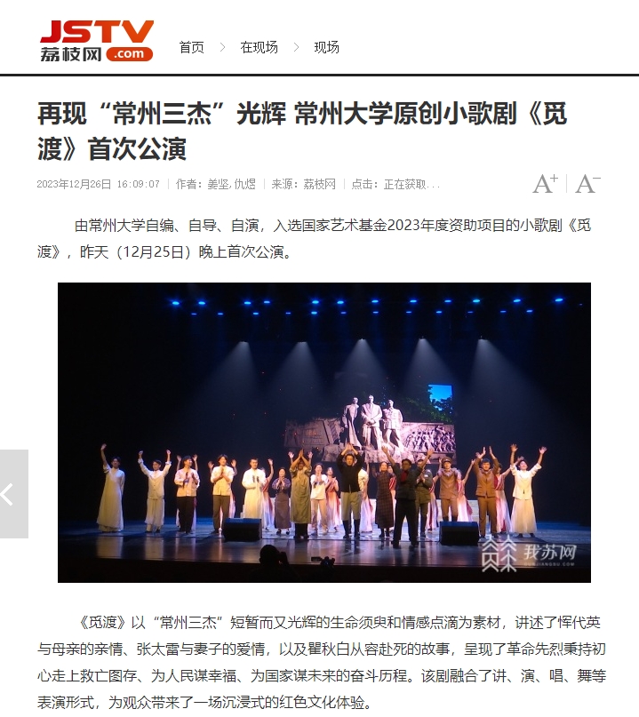由常州大学自编、自导、自演,入选国家艺术基金2023年度资助项目的小歌剧《觅渡》,昨天(12月25日)晚上首次公演。