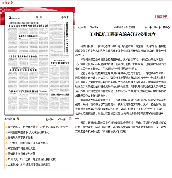 “如何实现工业母机行业设备国产化、技术自主可控,推动工业母机向高端化、智能化发展,不仅是新时代对工业母机行业提出的新命题,也是新时代赋予我们科技工作者的新使命。”常州大学党委书记徐守坤说。