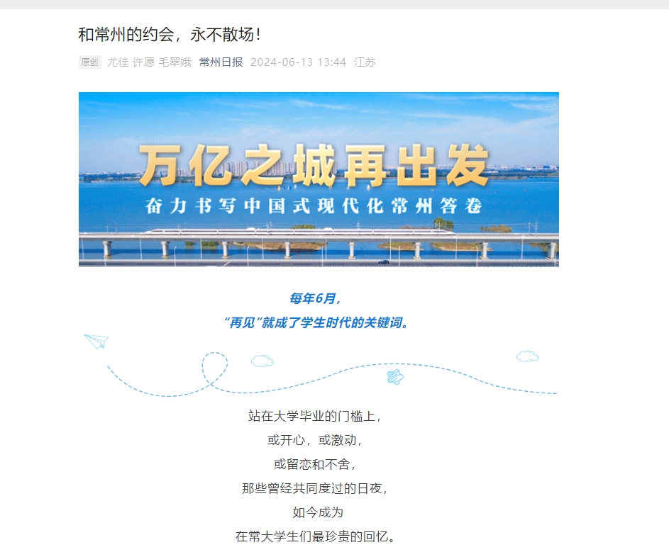 常州日报:https://mp.weixin.qq.com/s/tKfcpVDGcqjNRDFCADISqQ