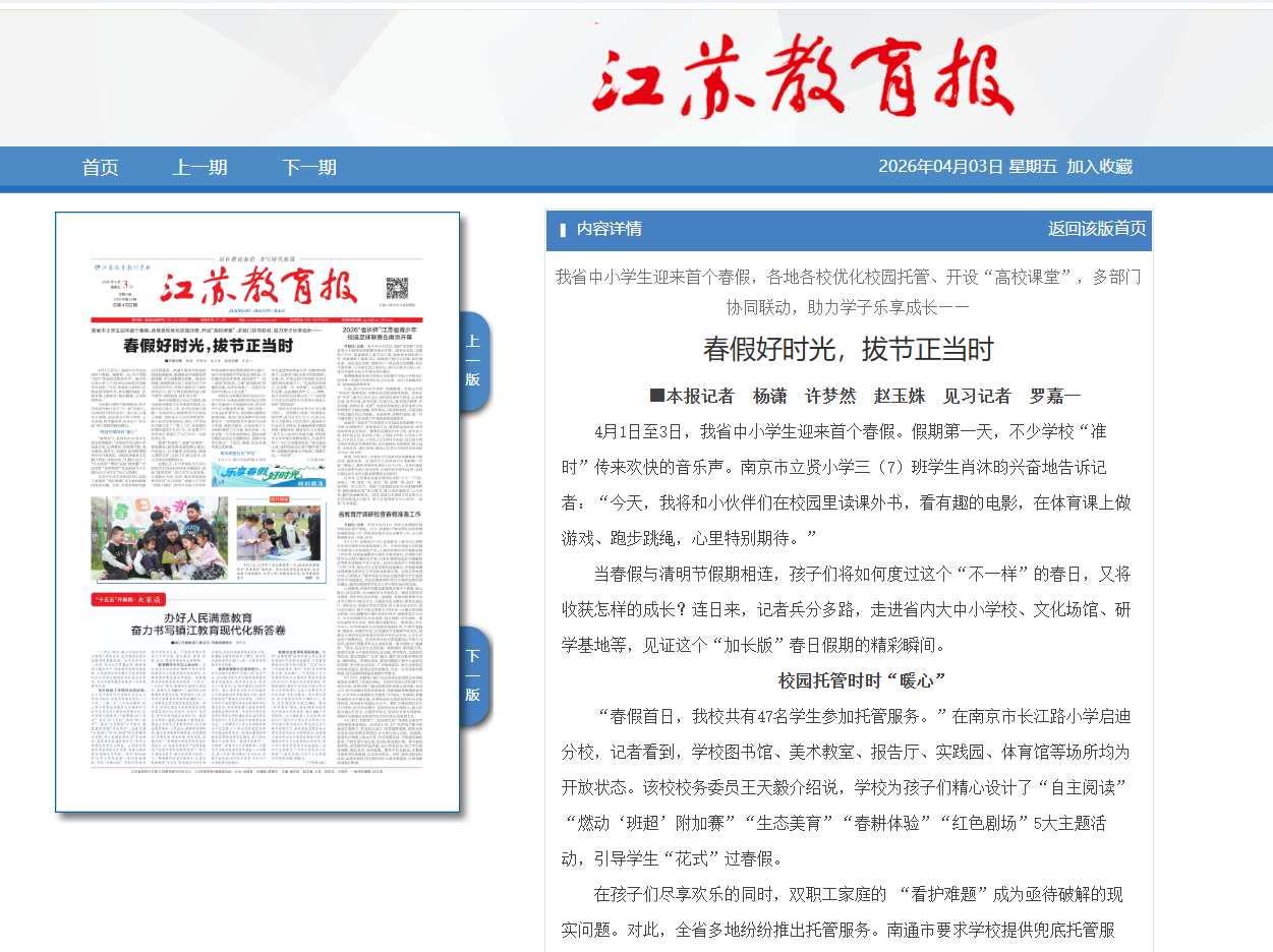 杨潇 许梦然 赵玉姝 罗嘉一 江苏教育报头版 2026.4.3 发布时间:2026/04/03 浏览次数:10次